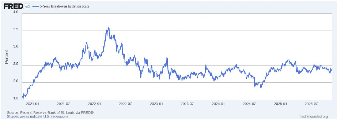 And what about what has been the primary downside risk confronting investors for much of the 2020s, which is the threat of sustainably higher inflation?  Expectations remain fully contained with the latest 5-Year Breakeven Inflation Rate reading still drifting below 2.4%.