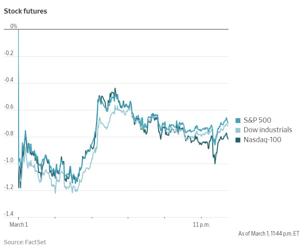 As for equities, index futures were down more than 1% on Sunday night but pared losses at the open on Monday.